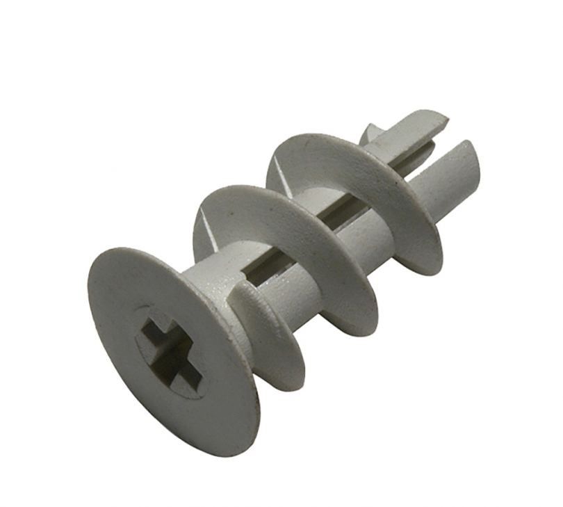 Специализированный пластик, который применяют при изготовлении, со временем не деформируется и не растягивается. Он спокойно выдерживает н температуры до -40 градусов. При этом такой дюбель легкий и доступный по цене.