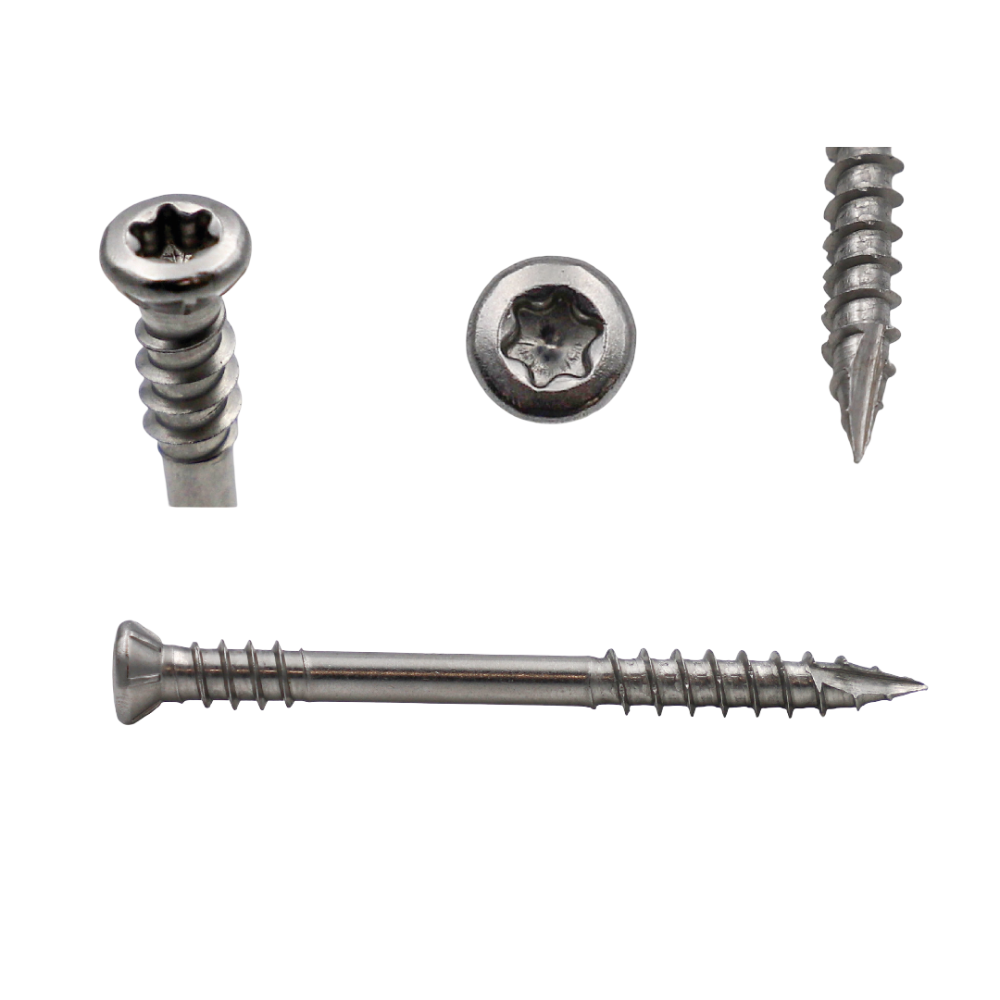 Саморез для террас из нержавеющей стали A2 — это надежный крепеж, предназначенный для фиксации террасных досок к деревянному или металлическому основанию. Он обладает высокой устойчивостью к коррозии, что делает его идеальным решением для использования на открытом воздухе, в условиях повышенной влажности и агрессивной среды.